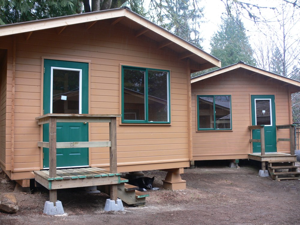 These cabins were all built to house additional employees at a childrens camp. They have bunkbeds built into the wall and each cabin can sleep 4 people. They also fall into the micro cabins under 10 sq.meter or 107.6sq.ft !